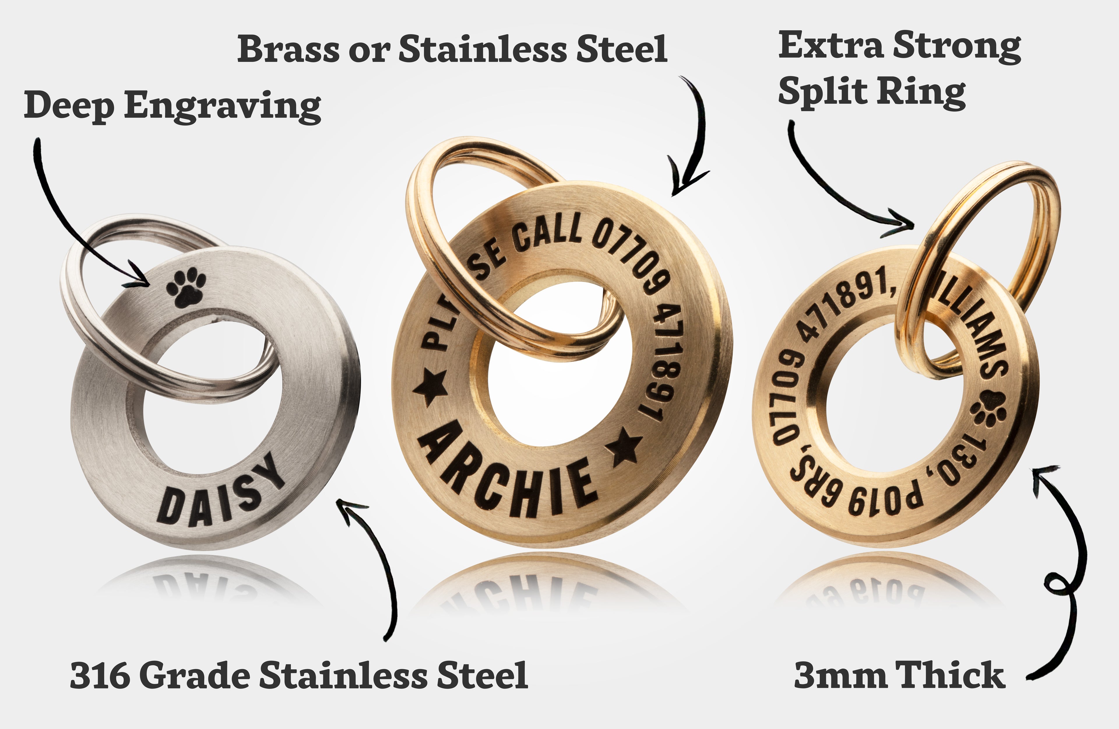 Deep Engraved, Solid Brass / Stainless steel Dog / Pet ID Tag